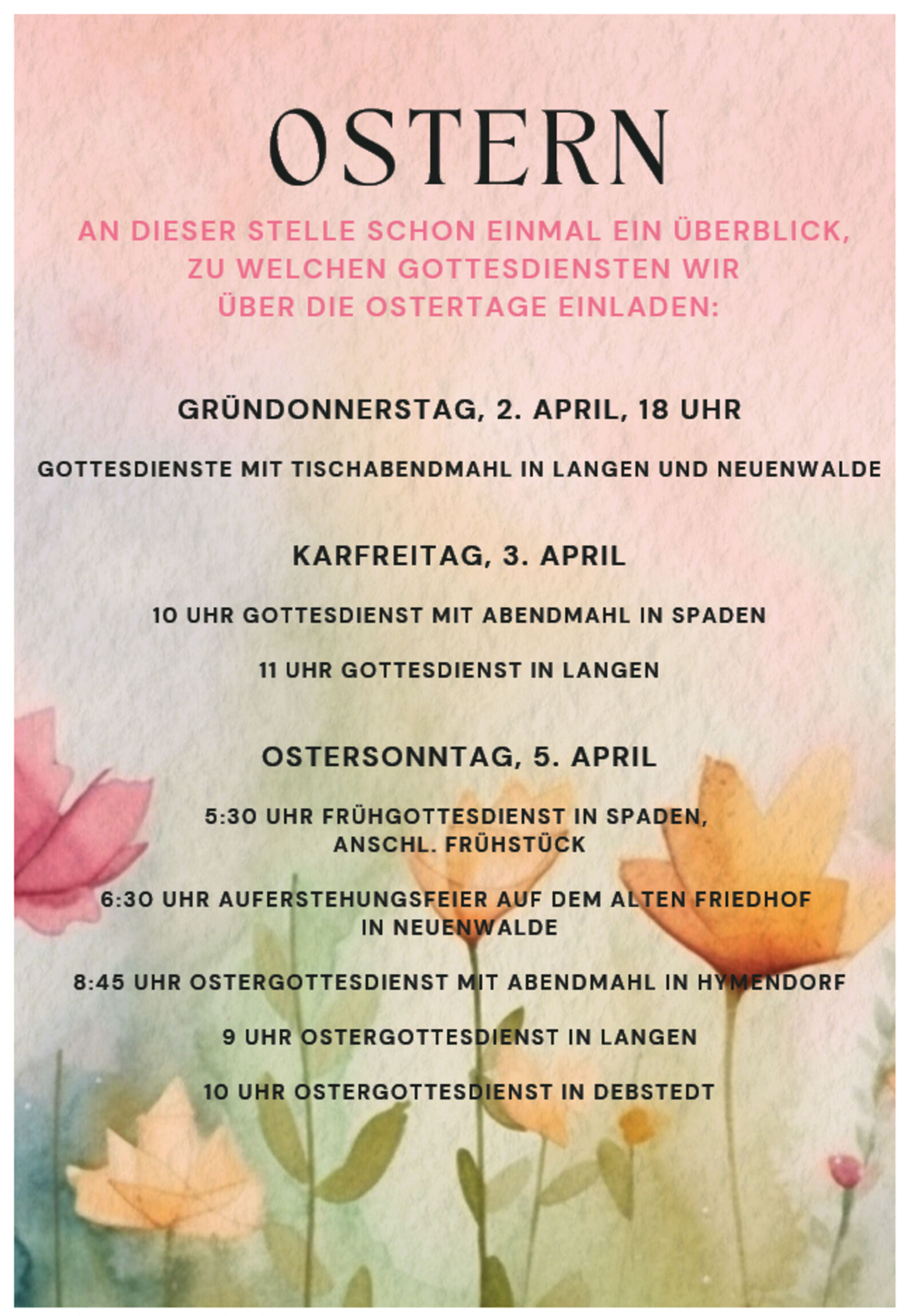 Oster-Gottesdienste in der Gesamtkirchengemeinde